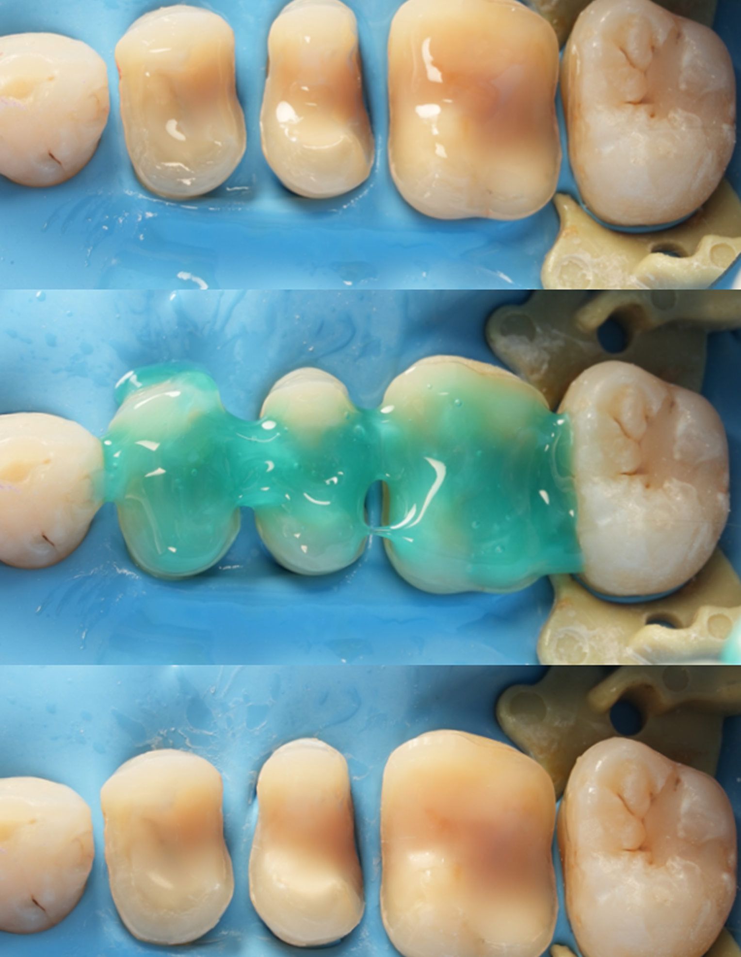 そのため当院では「う蝕検知液」を用いて、感覚ではなく、視認できるかたちに虫歯を染め出しながら治療を行っていきます。染め出すことで必要な部位をしっかりと除去でき、また健全な歯質を無駄に削ることがありません。